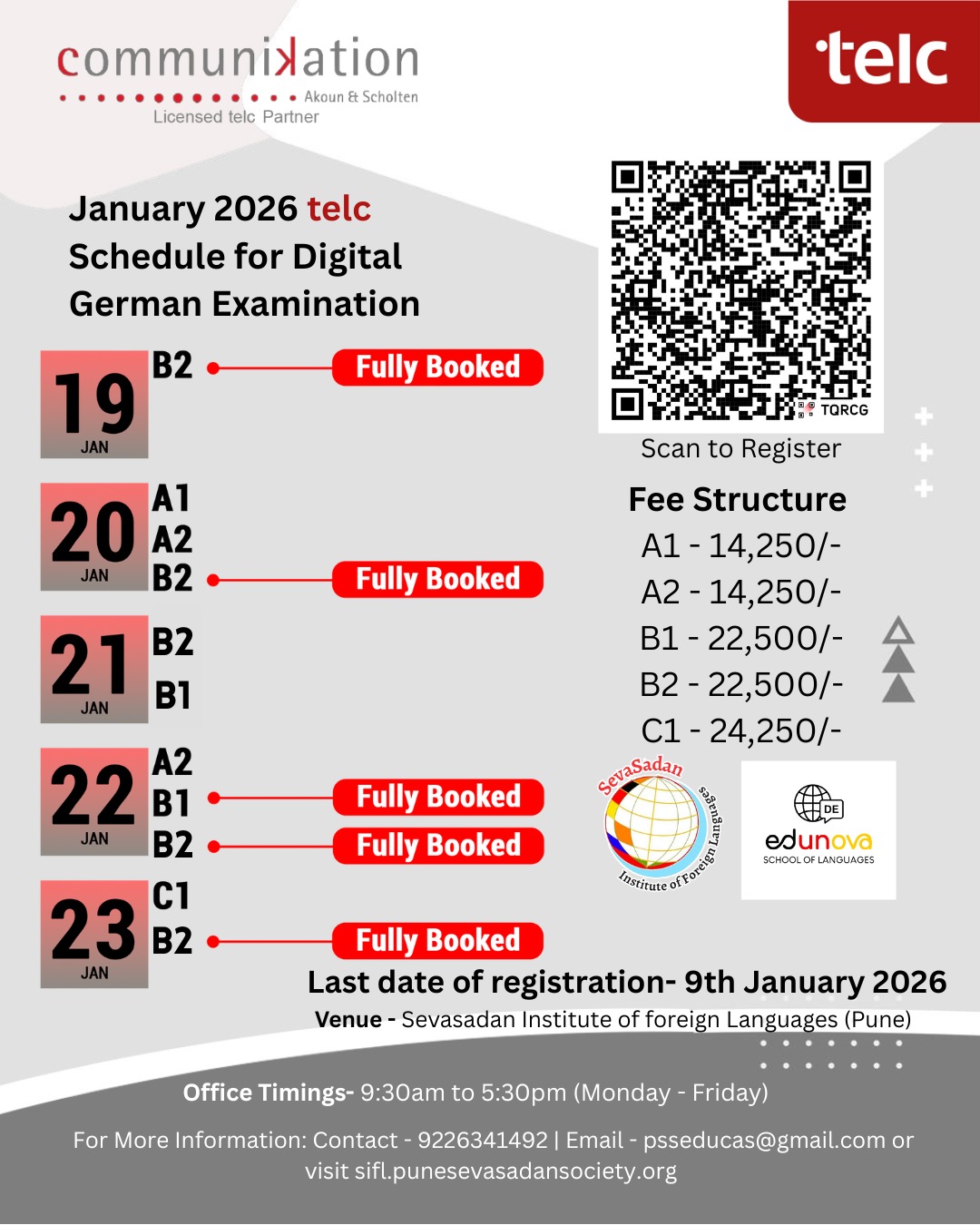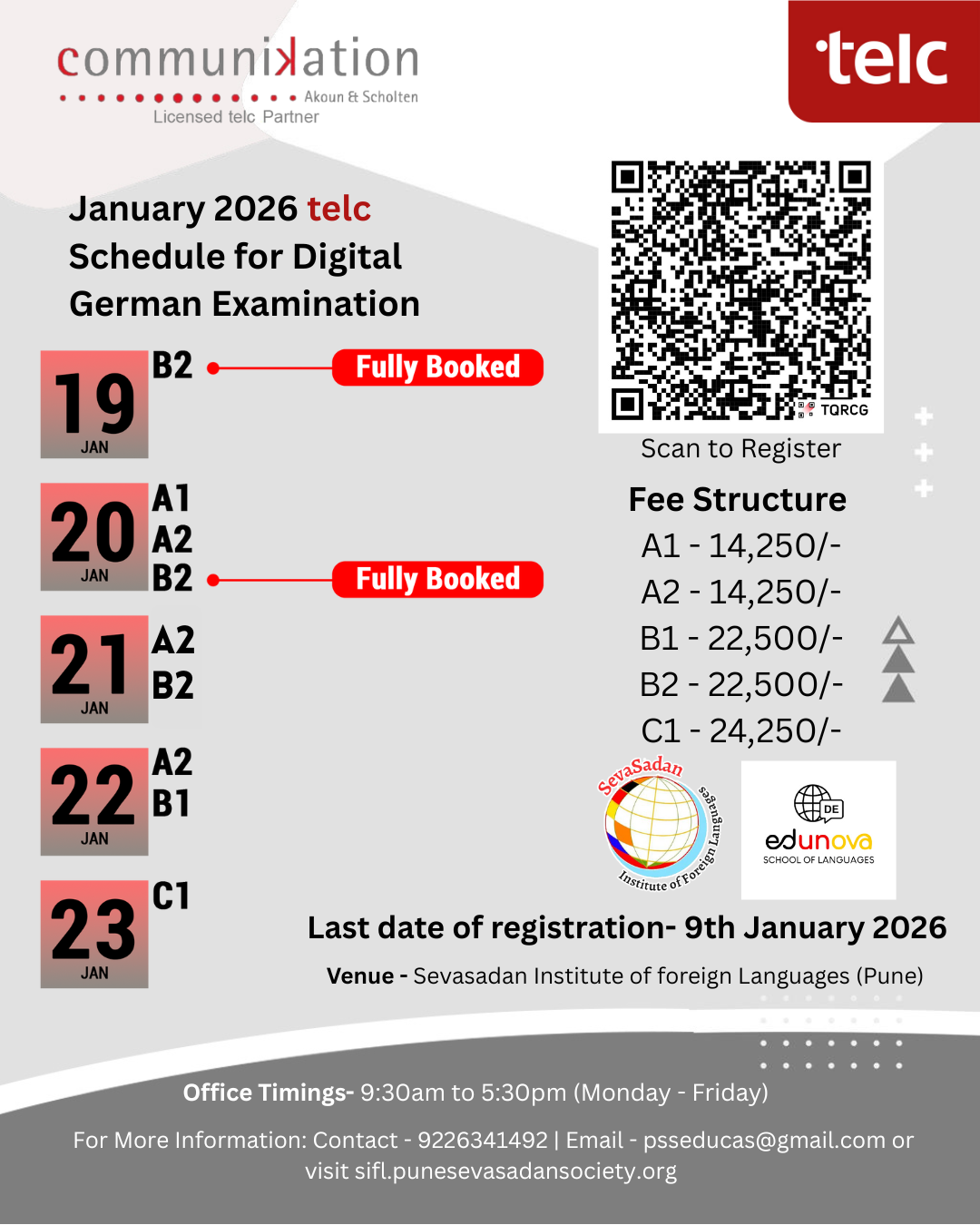 telc-Außenstellenprüfung of Communikation Akoun & Scholten GmbH, in cooperation with Sevasadan and edunova, Pune.